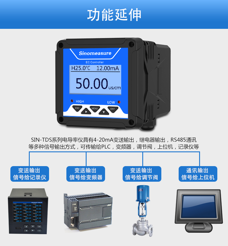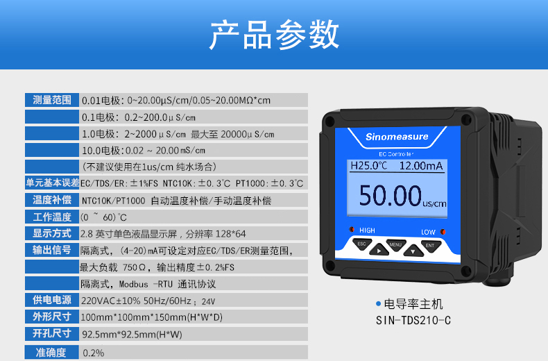 SIN-TDS210-C工業(yè)電導(dǎo)率儀表,廣泛應(yīng)用于火電、化工化肥、冶金、環(huán)保、制藥、生 化、食品和自來(lái)水等行業(yè)??刂破髦饕獙?duì)溶液中的電導(dǎo)率/總?cè)芙夤腆w/ 電阻率和溫度進(jìn)行連續(xù)監(jiān)測(cè)。