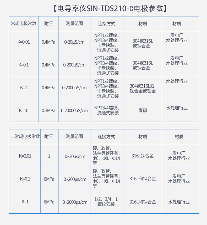聯(lián)測(cè)儀表SIN-TDS210-C在線電導(dǎo)率儀鍋爐行業(yè)、純水檢測(cè)