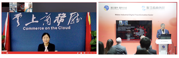 此次漢諾威工博會,我司同阿里云、三維通信、舜云互聯(lián)、申昊科技等多家浙江知名企業(yè)共同亮相浙江省商務(wù)廳主辦的2022浙江服務(wù)貿(mào)易(德國)數(shù)字工業(yè)展,向全世界展現(xiàn)“浙江服務(wù) 服務(wù)全球”的魅力。當(dāng)?shù)貢r間5月30日上午,浙江省駐德國商務(wù)代表處主任張漢東在現(xiàn)場主持工業(yè)展開幕式,浙江省商務(wù)廳服務(wù)貿(mào)易處處長莊謹(jǐn)在線出席開幕式。