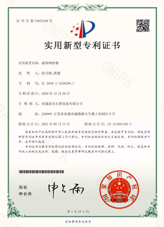 實(shí)用新型專利 :液體噴射器 專利號(hào):ZL 2020 2 3238294.1