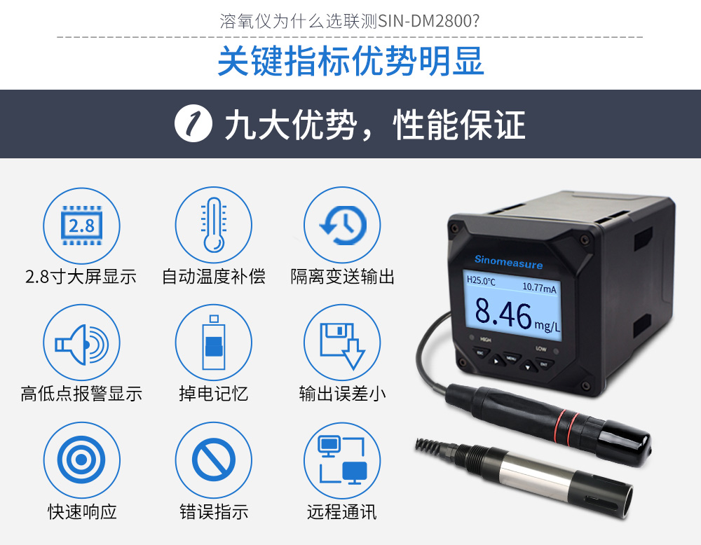 聯測SIN-DM2800工業(yè)在線溶氧儀是工業(yè)溶氧儀的智能化升級產品,可對污水溶氧值進行連續(xù)測量和控制,適用于污水處理,氧化溝,生化池,曝氣池等領域,適合環(huán)保污水等行業(yè)大量使用。