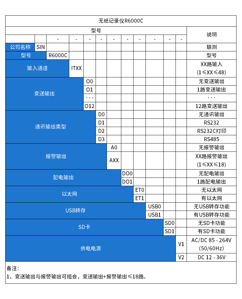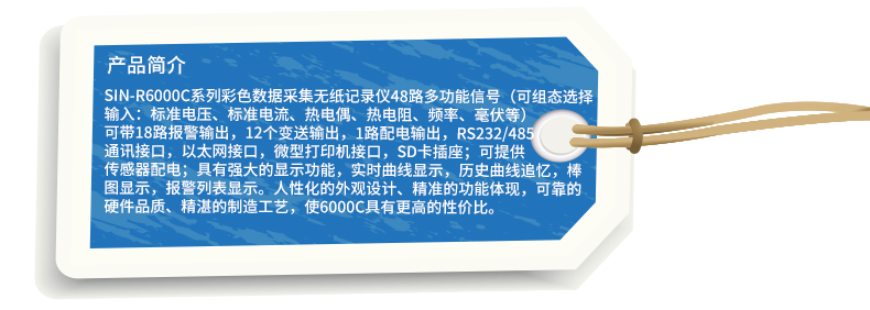 SIN-R6000C系列彩色無(wú)紙記錄儀48路萬(wàn)能輸入(可組態(tài)選擇輸入:標(biāo)準(zhǔn)電壓、標(biāo)準(zhǔn)電流、熱電偶、熱電阻、頻率、毫伏等)??蓭?8路報(bào)警輸出,12個(gè)變送輸出,RS232/485通訊接口,以太網(wǎng)接口,微型打印機(jī)接口和USB接口,SD卡插座;可提供傳感器配電;具有強(qiáng)大的顯示功能,實(shí)時(shí)曲線(xiàn)顯示,歷史曲線(xiàn)追憶,棒圖顯示,報(bào)警列表顯示。