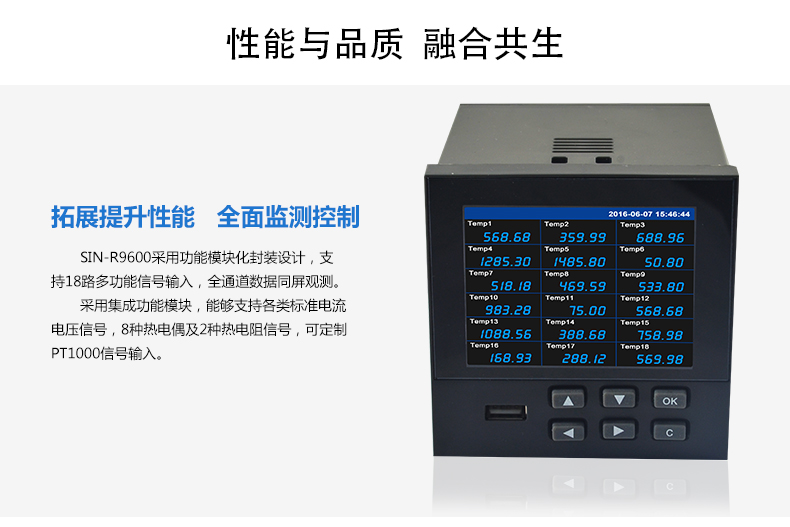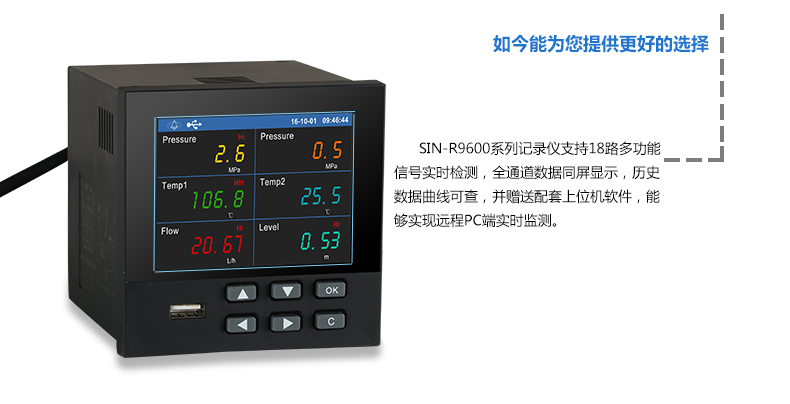 SIN-R9600無紙記錄儀內部采用高速、高性能32位cortex-M4微處理器。電路板經過“防腐、防潮、防塵”三防涂覆處理。高性能儀表電源有強大的抗干擾能力,能有效抑制外部諧波干擾,大大提高了整機的穩(wěn)定性。