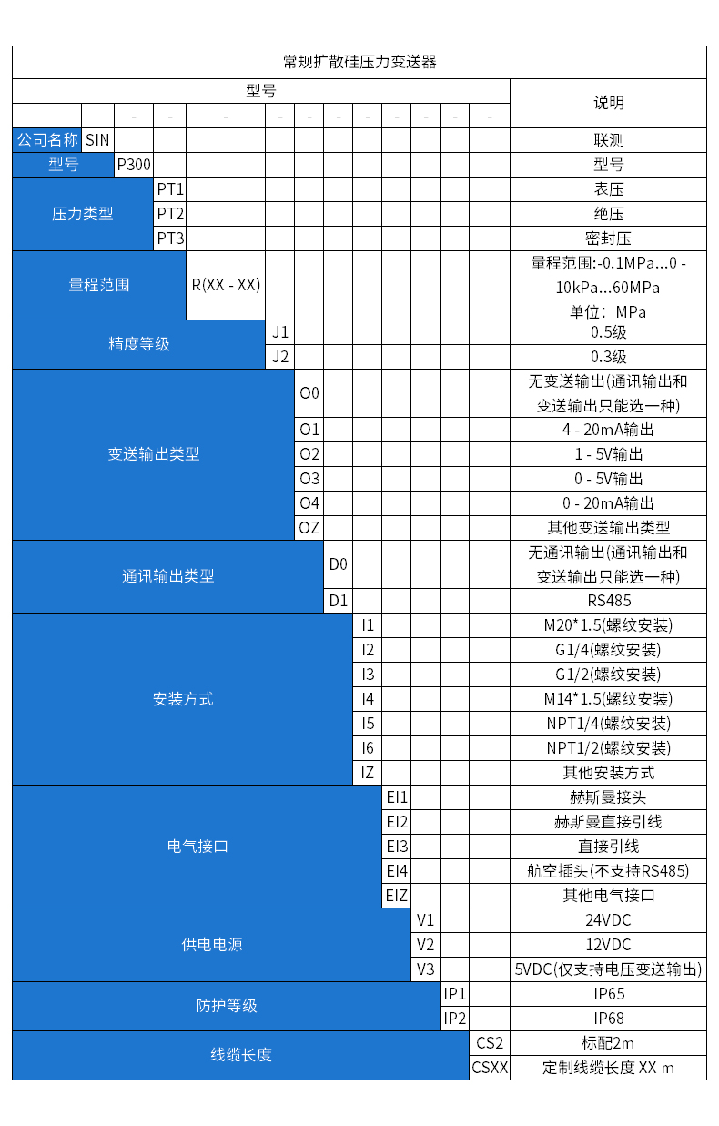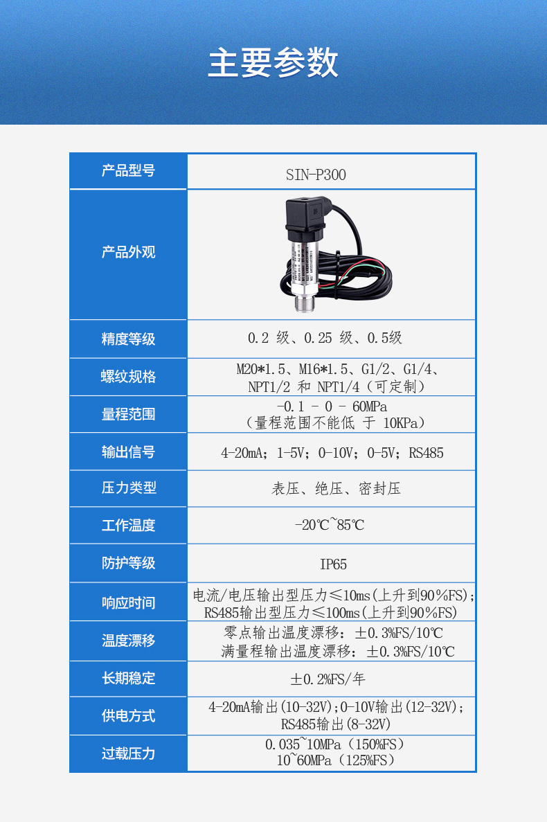 SIN-P300通用型壓力變送器德國進口硅芯片,精度高性能穩(wěn)定;SIN-P300型通用型壓力變送器采用擴散硅壓力芯體作為敏感元件,內(nèi)置處理電路將傳感器毫伏信號轉(zhuǎn)換成標準電壓﹑電流信號輸出,可直接與計算機、控制儀表﹑顯示儀表等相連。