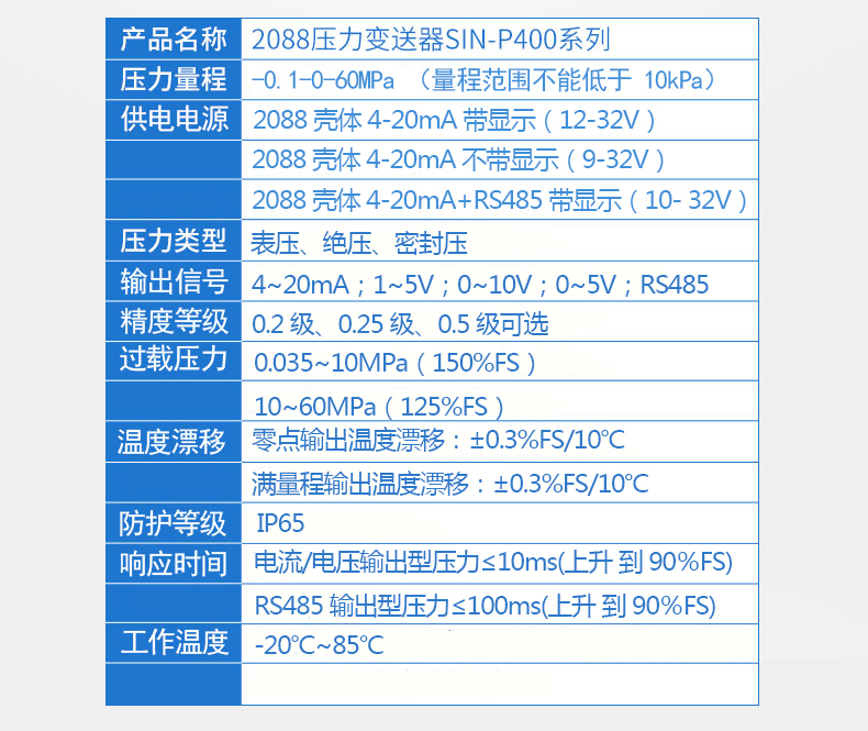 SIN-P400壓力變送器,采用全數(shù)字電路板,做到用戶可在一定范圍內(nèi)自行現(xiàn)場(chǎng)修改量程,極大的方便了現(xiàn)場(chǎng)使用。